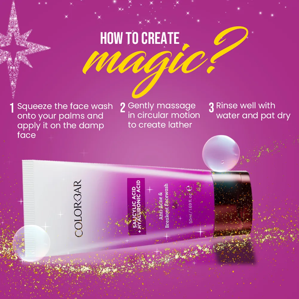 Colorbar’s Salicyclic Acid and Hyaluronic Acid facewash is an everyday facewash for acne-prone oily skin. It contains Salicyclic Acid as its hero ingredient that helps to gently clean deep into the pores and prevents the future occurrence of acne as well. The powerful blend of Niacinamide and Glycolic Acid visibly minimizes pores, prevents sebum build-up, exfoliates dead skin cells, and helps deliver a clear and bright complexion. Most importantly, the addition of Hyaluronic Acid makes sure that your skin is never stripped of its natural moisture. Your skincare BFF is also enriched with Willow Bark Extract, Vitamin B5, Witch Hazel, Tea Tree oil, and Pentavitin which ensure that your skin is acne free, glowing, and has a well- balanced Ph.