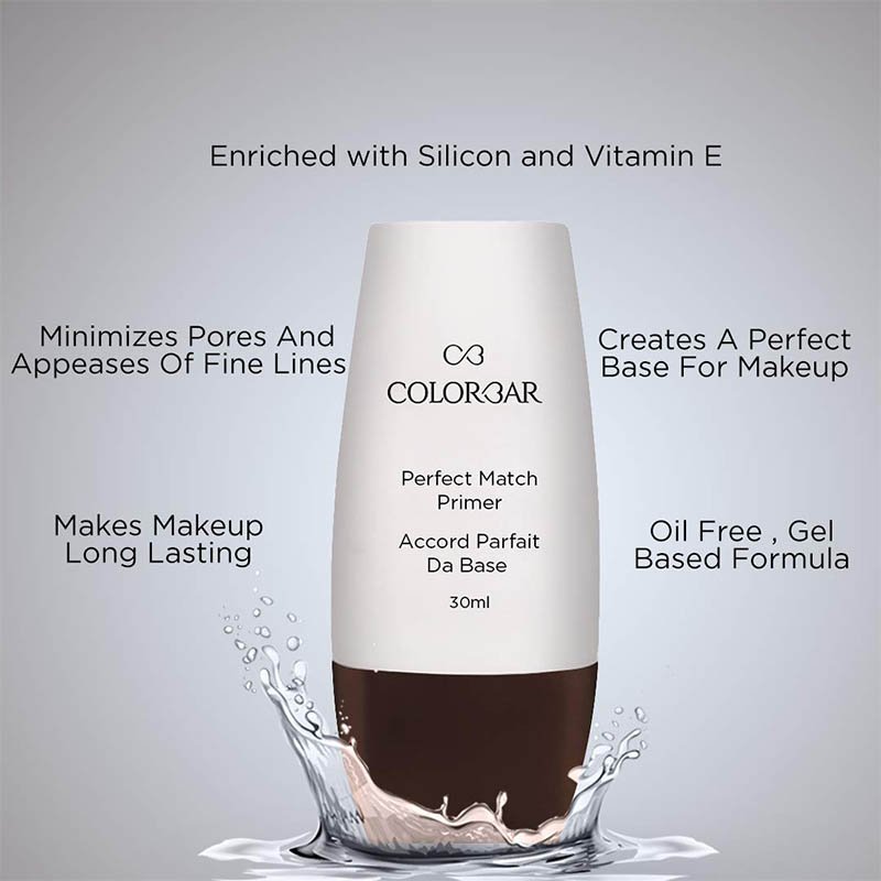 Colorbar Perfect Match oil-free primer creates the smoothest canvas for your makeup. Enriched with vitamin E, it masks fine lines, targets redness, and smooths your skin’s texture for a flawless foundation and concealer application.