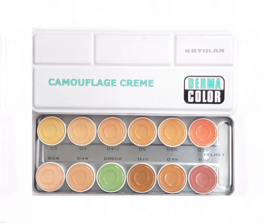 Discover the DERMACOLOR Camouflage Creme Palette, a professional-grade makeup solution for covering skin imperfections. This highly pigmented cream palette is designed to correct and conceal discolorations, tattoos, and skin disfigurements. At Gupta Cosmetics, we offer this high-quality palette to help you achieve a flawless complexion. The palette is waterproof, UV-protective, and long-lasting, even under extreme conditions like swimming and physical strain. Each shade is intermixable to create a natural, seamless finish.