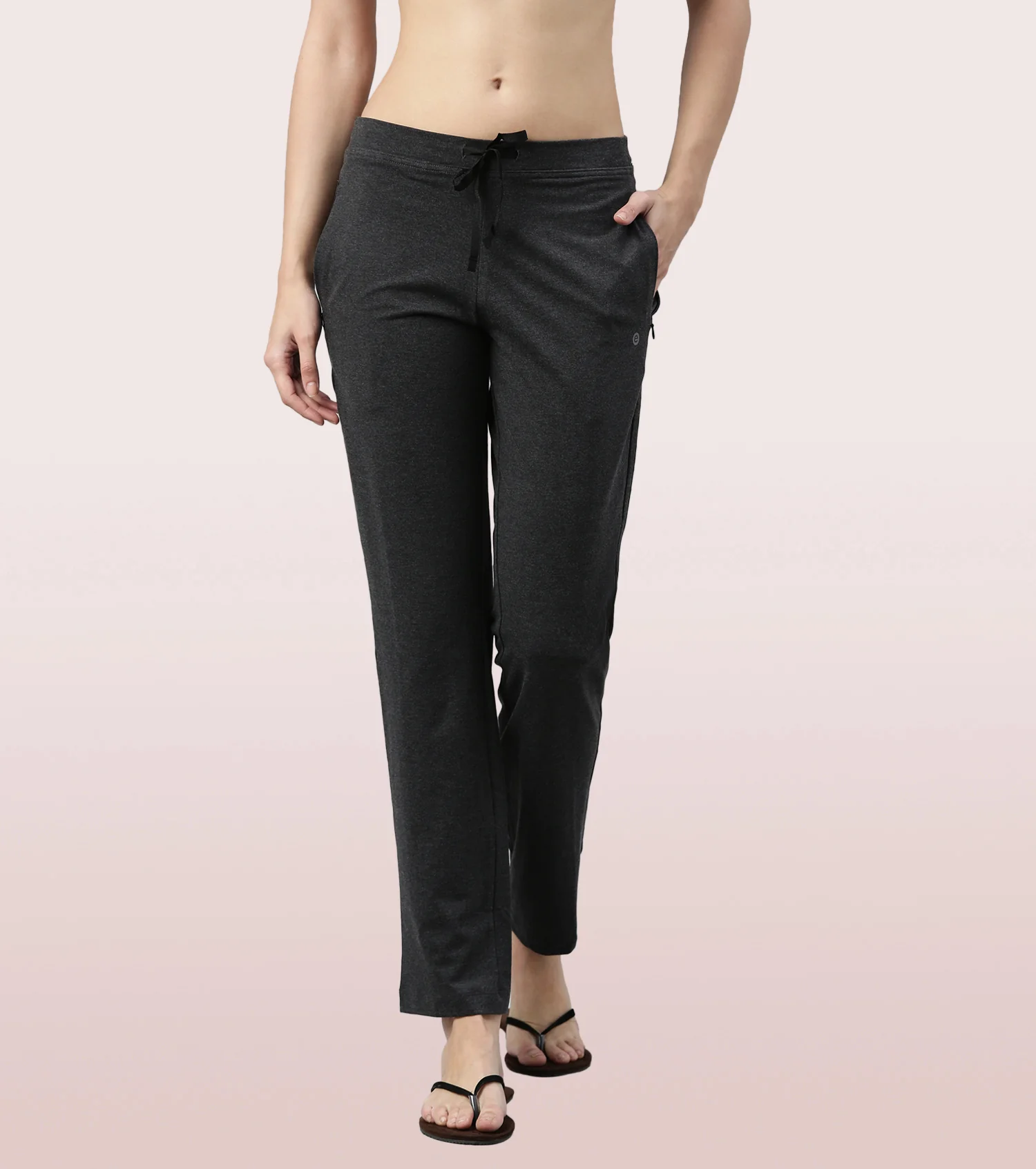 Experience ultimate comfort with Enamor Essentials Womens E014-Mid Rise Slim Fit Lounge Pants in Black. Shop at Gupta Cosmetics for premium loungewear.