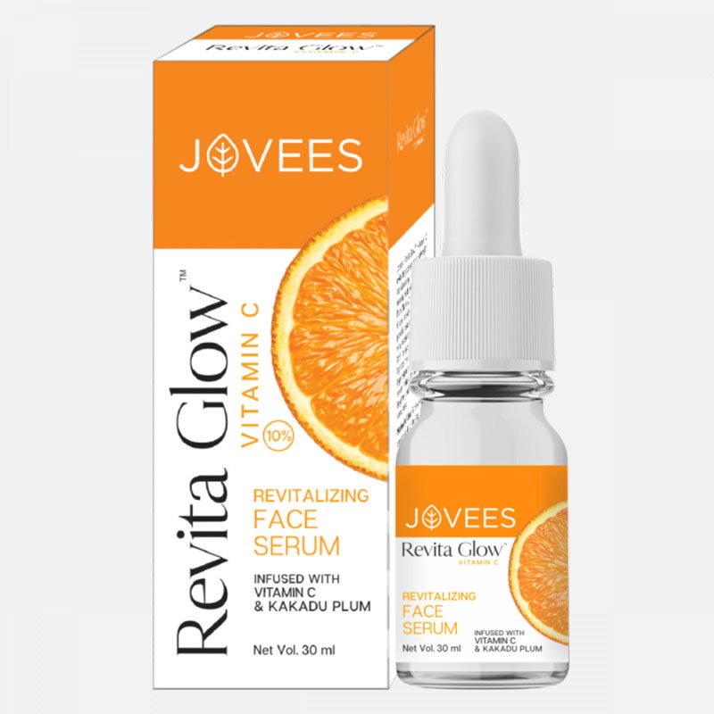 Jovees RevitaGlow™ Vitamin C revitalizing face serum is a lightweight, fast-absorbing, all-natural, oil-free formula, made with a blend of Kakadu Plum, Vitamin C, Bearberry extract and Grape seed extract provides a powerful dose of anti-oxidants to your skin, accelerates the production of both collagen and elastin, deeply hydrates the skin and helps combat hyperpigmentation. This daily-use serum makes the skin feel firmer, brighter and with a more even complexion.