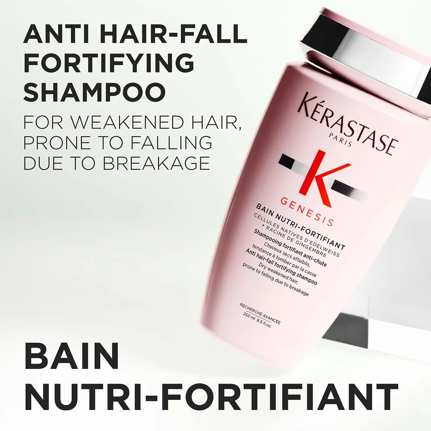 ” REDUCES HAIR-FALL DUE TO BREAKAGE: Formulated for normal to dry, weakened hair, the Kérastase Genesis Nutri-Fortifiant Shampoo helps reduce hair-fall caused by brushing and breakage, leaving hair stronger and more resilient from root to tip. GENTLY CLEANSES and NOURISHES: Its creamy, nourishing formula gently removes dirt and impurities while delivering essential hydration to dry hair, restoring softness without weighing it down. INFUSED WITH STRENGTHENING ACTIVES: Contains Ginger Root Extract that protects hair against daily aggressors (like pollution, UV rays) and Edelweiss Native Cells which contain powerful anti-oxidants to preserve collagen quality. PROVEN RESULTS: The Genesis Range is clinically proven to give you 84% Stronger Hair* *Instrumental Test with Bain Nutri-Fortifiant Shampoo + Masque + Sérum v/s non-conditioning shampoo”