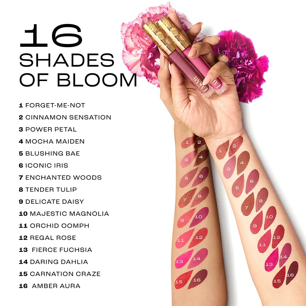 | LAKME ROUGE LIQ LIP | AMBER AURA 306, BLUSHING BAE 204, CARNATION CRAZE 101, CINNAMON SENSATION 305, DARING DAHLIA 201, DELICATE DAISY 302, ENCHANTED WOODS 307, ICONIC IRIS 501, MAJESTIC MAGNOLIA 202, MOCHA MAIDEN 301, ORCHID OOMPH 203, POWER PETAL 304, REGAL ROSE 102, TENDER TULIP 303 |