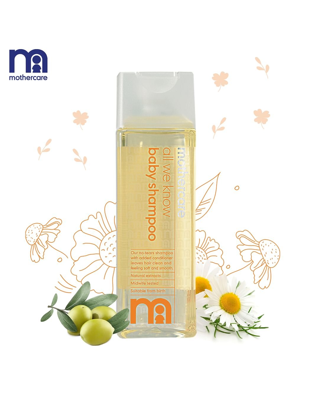 Mothercare All We Know Baby Shampoo With Mild Formulation And Conditioner Cleanses The Scalp And Leaves Hair Naturally Clean And Shiny. Our No Tears Shampoo With Added Conditioner Leaves Hair Clean, Feeling Soft And Smooth. It Contains Olive Oil, Nature’S Ultimate Moisture, And Soothing Chamomile.