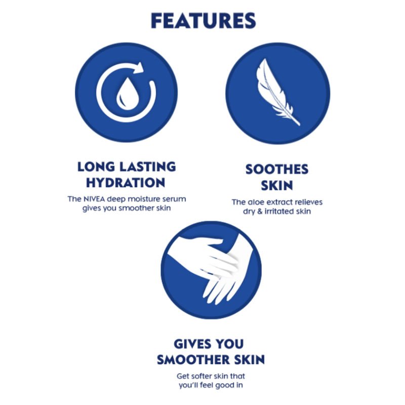 Gift your skin the goodness of Nivea Aloe Hydration Body Lotion for all day long smooth skin. Enriched with aloe vera extracts, it soothes dry & irritated skin and leaves you with comfortable, soft skin.