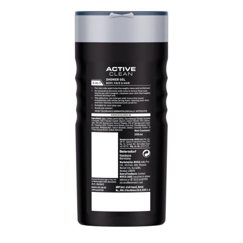 For men who want a thoroughly clean and revitalized shower experience. Nivea Men Active Clean Shower Gel deep cleanses your body while being mild on your skin. This innovative 3-in-1 shower gel for body, face and hair has natural active charcoal which works as a dirt magnet and cleanses your skin thoroughly without drying it out. Let this effective, yet mild gel with masculine scent transform into a white caring foam, which keeps your skin hydrated.