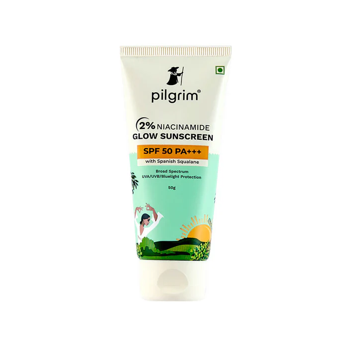 Fall in love with 2% Niacinamide Glow Sunscreen which not only protects your skin from sun damage but also helps reveal a radiant glow. With SPF 50 and PA+++ protection, it prevents sun damage, tanning and blue light effects. But it takes a step further with its glow benefits. This product is powered with skin brightening Niacinamide and Alpha Arbutin. This water-based formula ensures a light and non-greasy application, leaving no white cast or residue. Perfectly designed for daily wear or before applying makeup. Our carefully curated ingredients like Niacinamide enhance the skin barrier, Spanish Squalane hydrates and nourishes to deliver soft, smooth skin, while Alpha Arbutin naturally brightens. Make sure you apply this every day to protect yourself from harmful UVA/B rays and Blue Light damage. Non-toxic. Fragrance-free. Gentle on the skin. Experience the dual benefits of the Glow Sunscreen with powerful sun protection and a radiant glow!