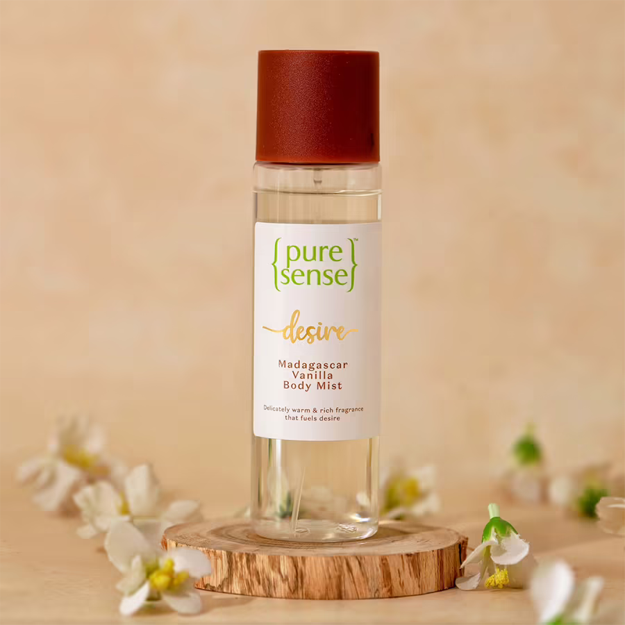 - Add this to your everyday routine and envelope your senses in this subtle, delicate, warm fragrance of Madagascar Vanilla. This long-lasting body mist is a warm & sensual blend aroma that is sure to make you irresistible from head to toe. This warm and seductive fragrance perfectly complements your Little black dress. This warm yet delicate fragrance is sure to delight your senses. That is not all, this luxurious body mist is long-lasting and is an instant mood changer. Made consciously, without any harmful chemicals like sulphates & parabens, this Pure Sense Desire Madagascar Vanilla
