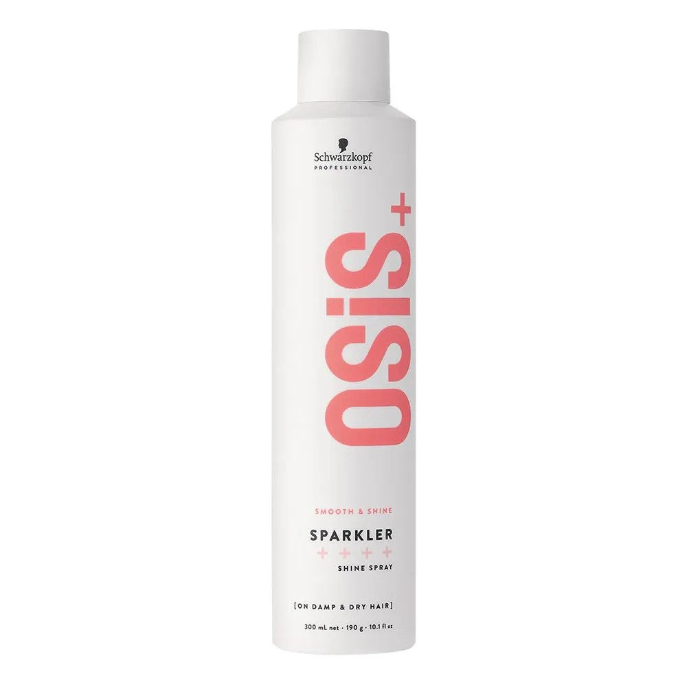 OSiS Sparkler is a silicone-free shine spray that provides light conditioning and instant shine for frizz-free, glamourous hair.